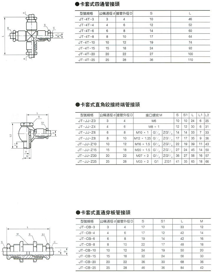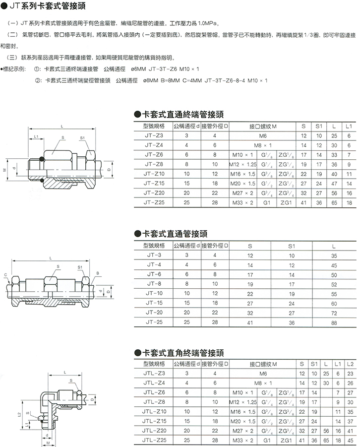 JT係列卡套式管接頭
